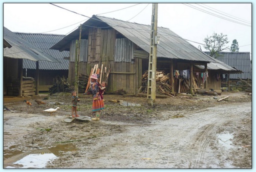 Ce jour là, le matin nous allons visiter le marché de Coc Ly ( voir la rubrique "Marché ethniques"). L'après midi nous partons à pied visiter le village de "la Patan". Vraiment génial, j'en garde un excellent souvenir de ce village, hors des sentiers pour touristes, l'authenticité à l'état pur, un contact très chaleureux avec les habitants. Notre esprit étant toujours basé sur l'humanitaire, nous emportons des cahiers et des crayons pour distribuer aux enfants. L'école est fermée début Août, mais les enfants sont tous là, chez eux ou dans la rue du village. Nous partageons avec eux le temps d'un instant, leur vie quotidienne sans "chichis" juste du naturel, dans ce lieu qui pour nous semble si loin de tout et très pauvre. Malgré cette pauvreté présente, le travail très difficile, on voit une joie de vivre, des sourires et aussi une grande solidarité ce qui fait toute leur force. Merci à tous ces gens de ce village pour leur accueil !
