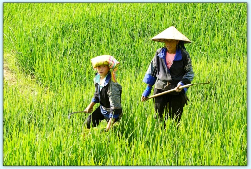 | Même très jeunes, les enfants participent au travaux des rizières |